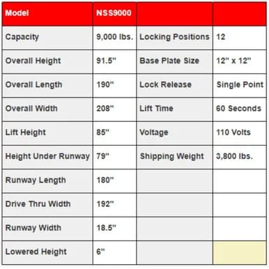 The Triumph NSS-9 is a heavy-duty 9,000 lb four-post lift designed for