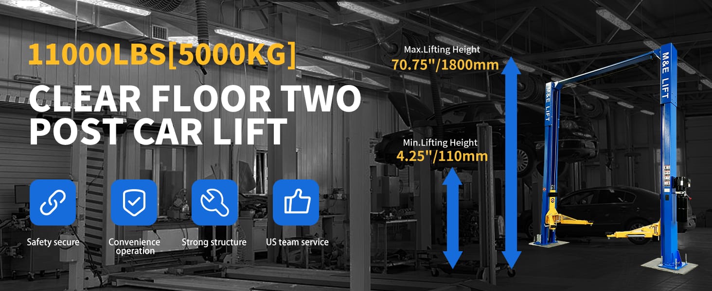 Upgrade your shop or home garage with a heavy-duty 11,000 lb two-post lift designed for